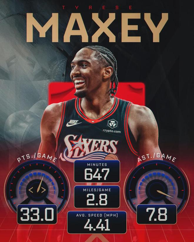 再看另外一组数据:不算今天这场比赛,马克西本赛季打了16场,一共出战647分钟,总出场时间联盟第一;场均跑动2.8英里(4.51公里),同样是联盟第一。马克西肩膀有伤,今天带伤出战。小马变牛马,就算是铁人也顶不住!